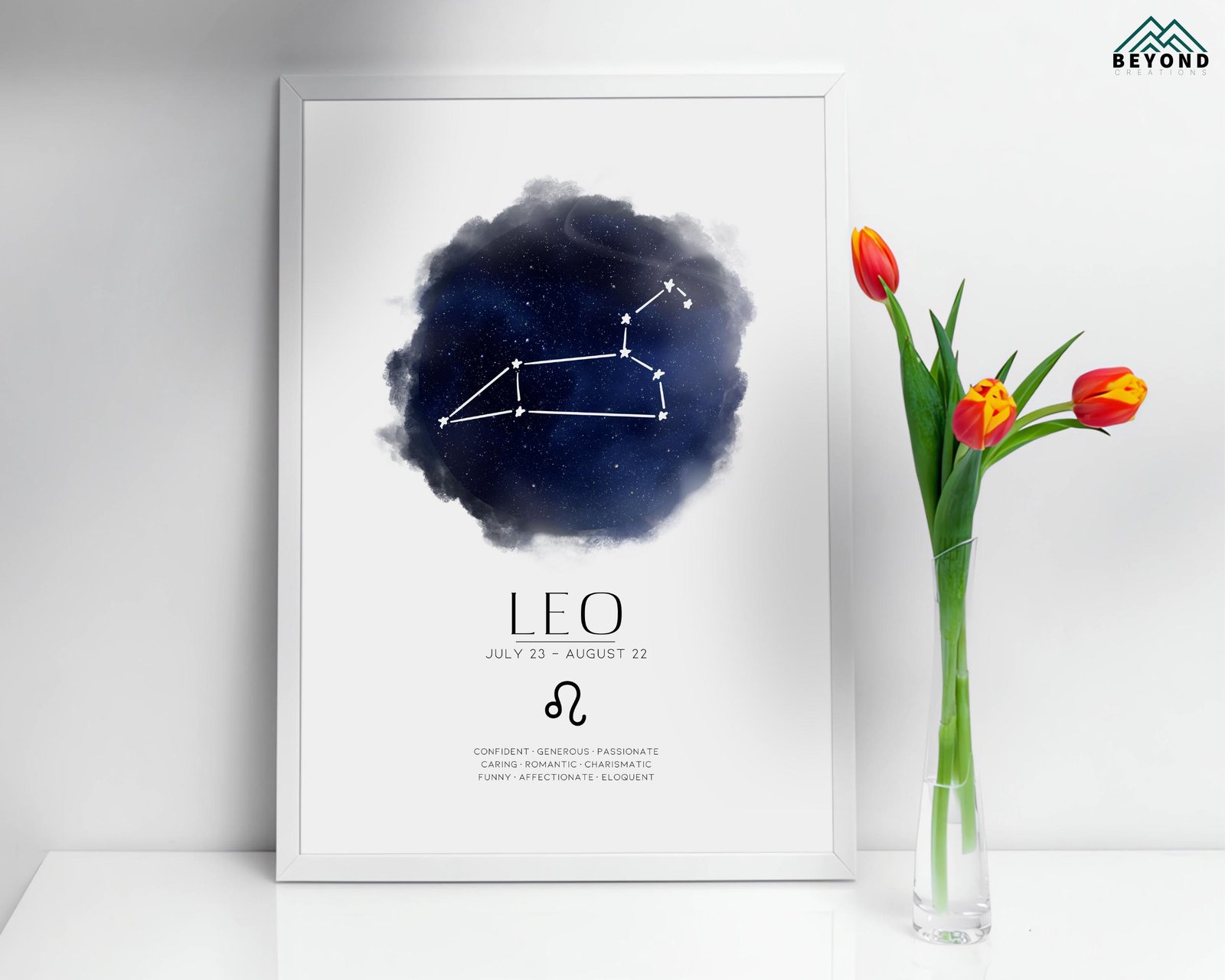 - 🧭 Zodiac Information Included Each print includes a minimalist description of Leo traits — courageous, generous, passionate — making it a conversation starter and reflection of personality.
