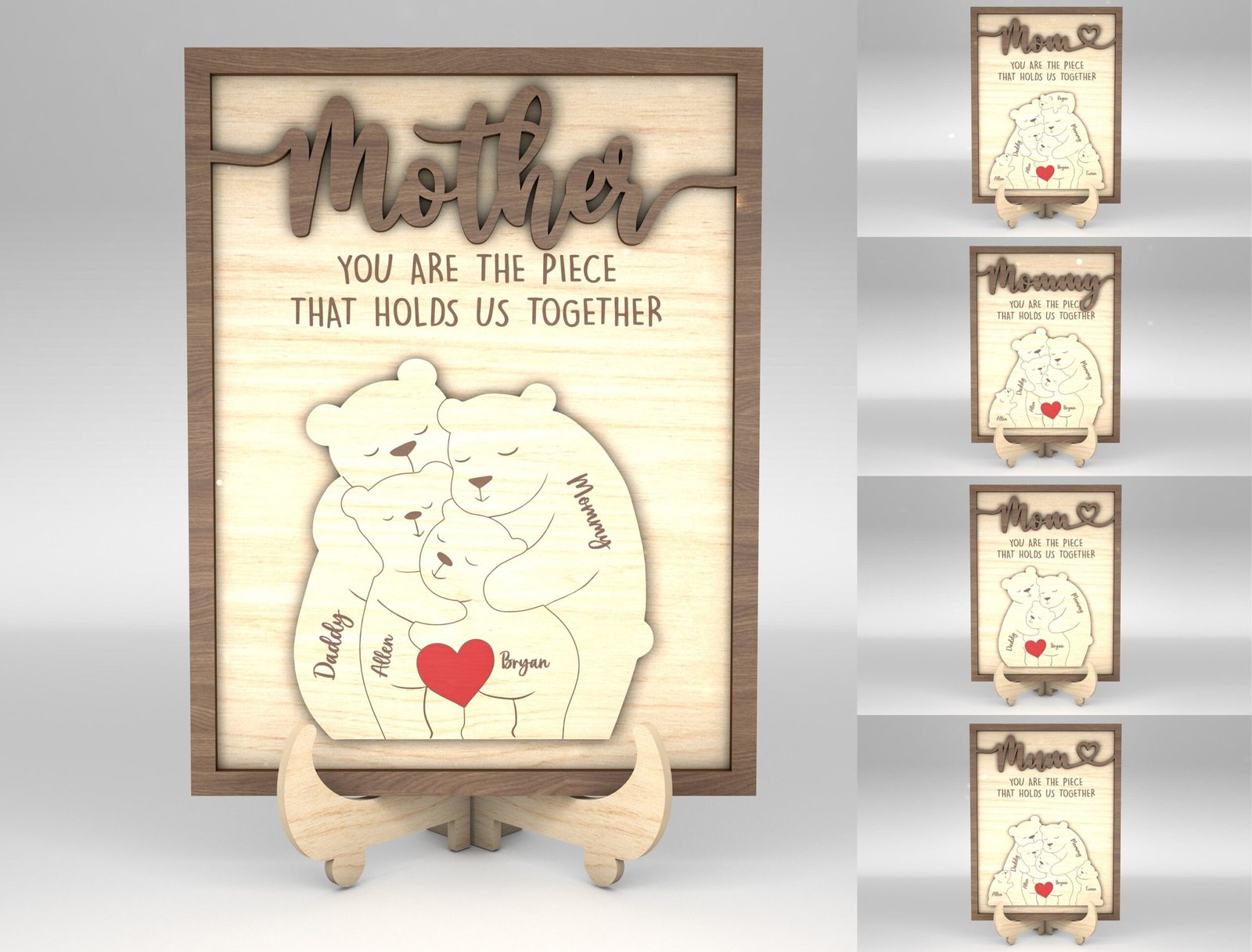 Capture the warmth of your family in a beautiful and customizable digital design with our Personalized Family Puzzle Sign SVG Bear. This downloadable SVG file is ideal for Cricut, Silhouette, and other cutting machines. Whether you’re creating a heartfelt gift, wall décor, or a keepsake sign, this puzzle-style bear layout lets you add individual names, making each piece of the bear represent a beloved family member. Perfect for Mother’s Day, Father’s Day, housewarming gifts, or just because—you’ll be turning pixels into precious memories in minutes.