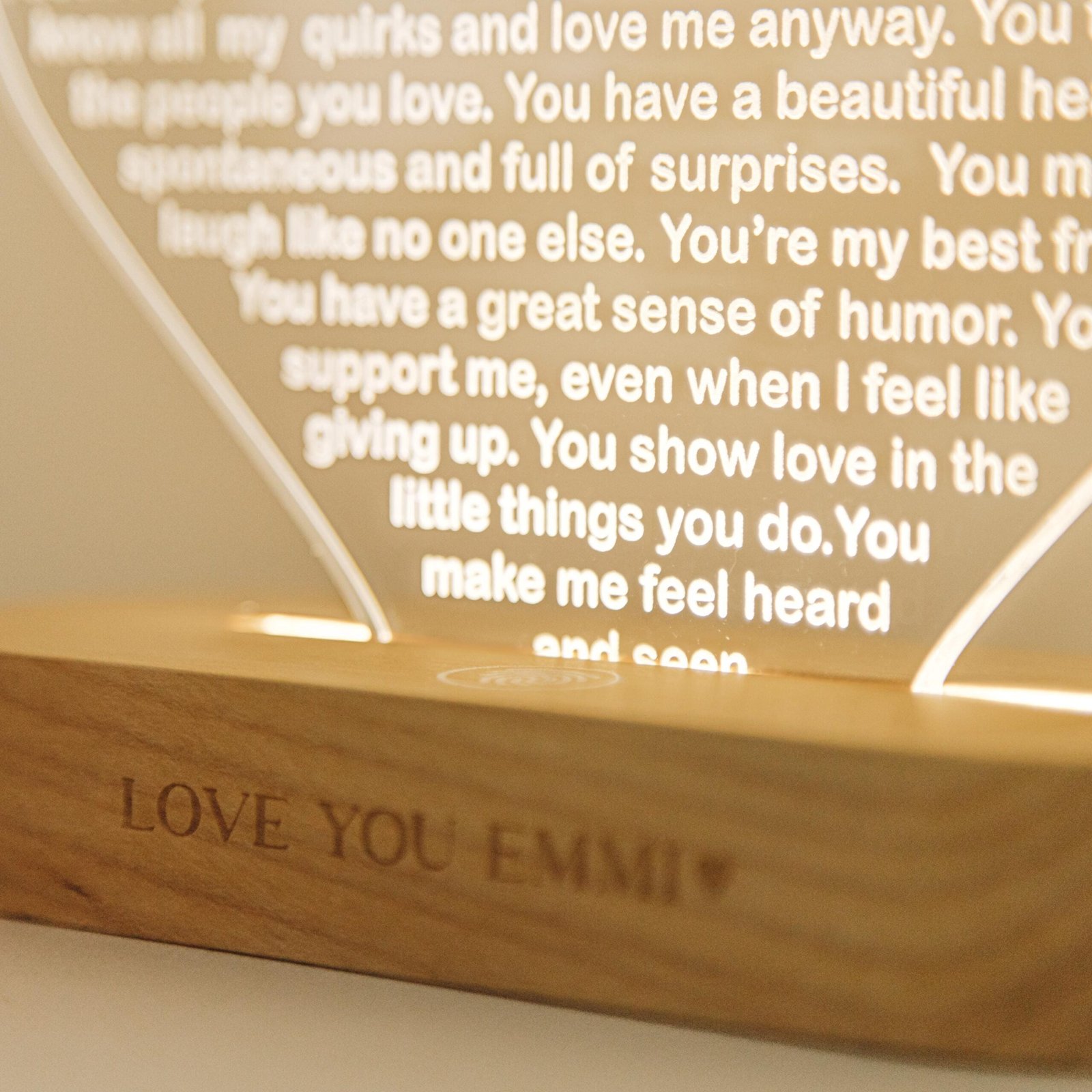 Light up her world with a custom heart night light—a perfect Christmas gift, a thoughtful 30th birthday surprise, a romantic gesture, or a touching anniversary present. Let love shine bright in the form of this personalized night light that symbolizes your deepest affections and conveys your heartfelt emotions in a warm and luminous way. Illuminate her heart and space with a gift that radiates love and togetherness.